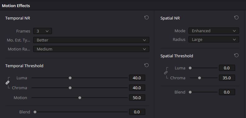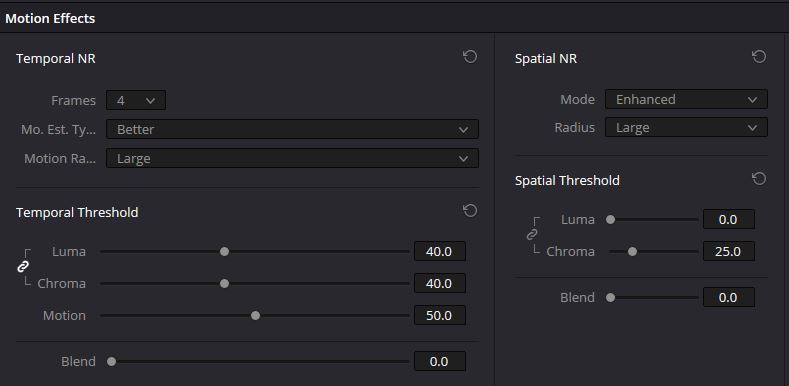 Noise reduction settings in DaVinci Resolve 18.6.4 for 5 stops underexposure. Image credit: CineD