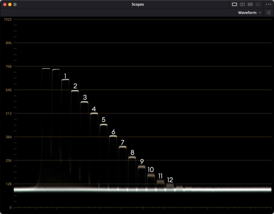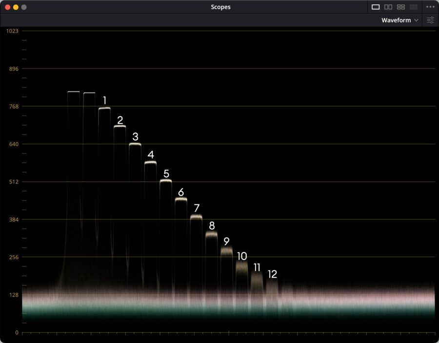 A solid 12 stops above the noise floor can be identified, with a 13th and even a 14th stop visible.